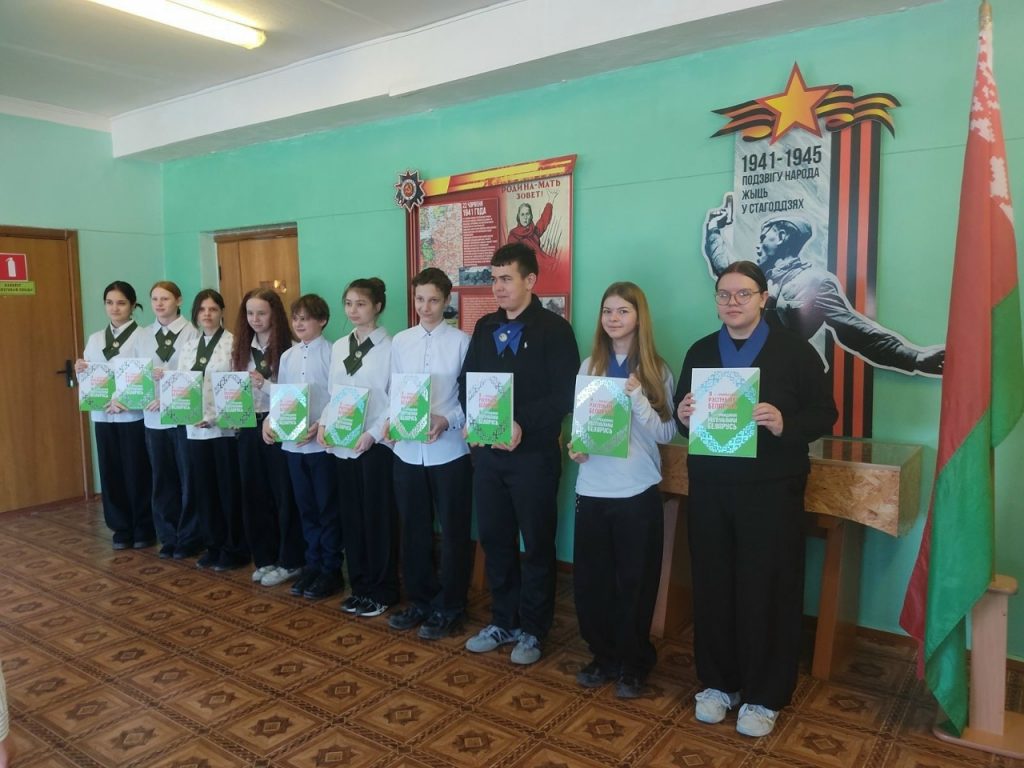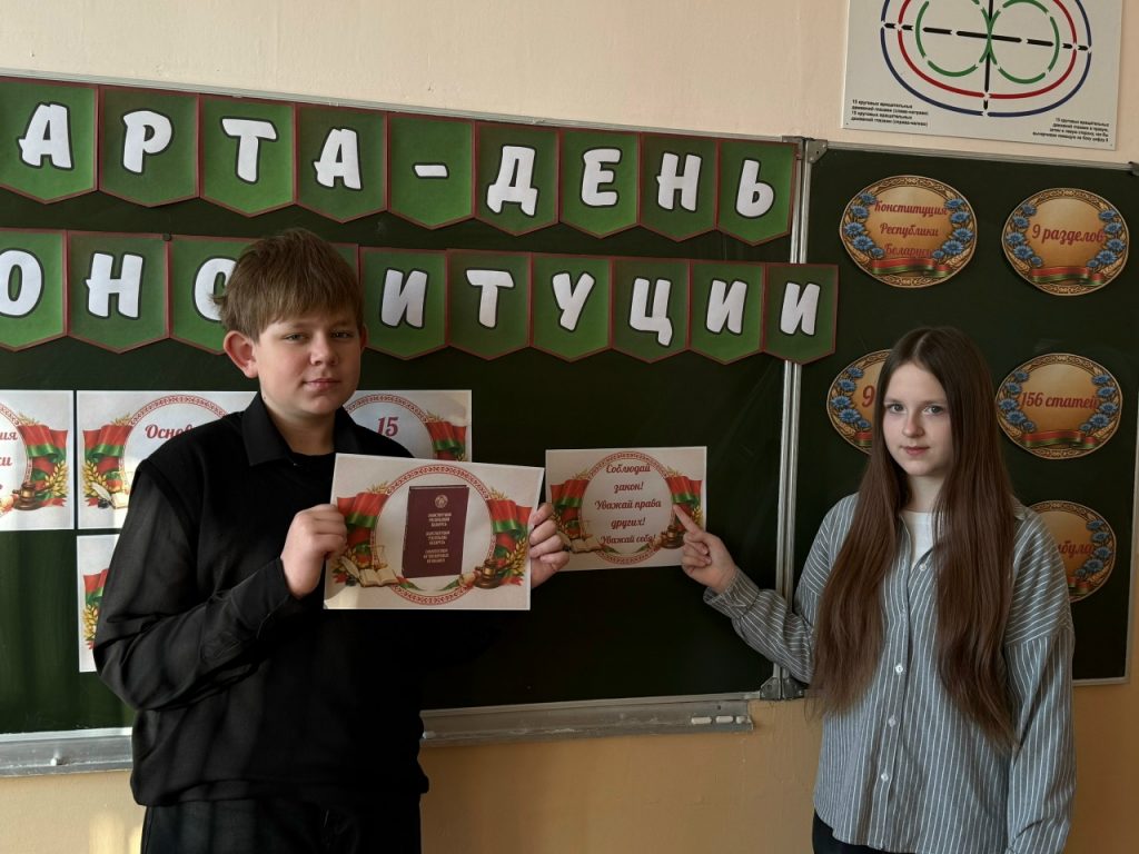 Также для учащихся 8-11 классов состоялась торжественная линейка, посвященная одному из главных государственных праздников — Дню Конституции Республики Беларусь. Учащиеся собрались, чтобы отметить этот важный день, который символизирует суверенитет государства и правовую основу жизни граждан. Линейка стала ярким напоминанием о том, что Конституция — это не просто документ, а залог мира, развития и благополучия каждого человека в нашей стране. Учащимся, достигшим 14 летнего возраста, директор школы Савенко С.А. вручила книги «Я — гражданин Республики Беларусь», поздравила присутствующих с Днем Конституции, отметила, что такие качества как ответственность, патриотизм и правовая культура – это кирпичики фундамента стабильного государства.