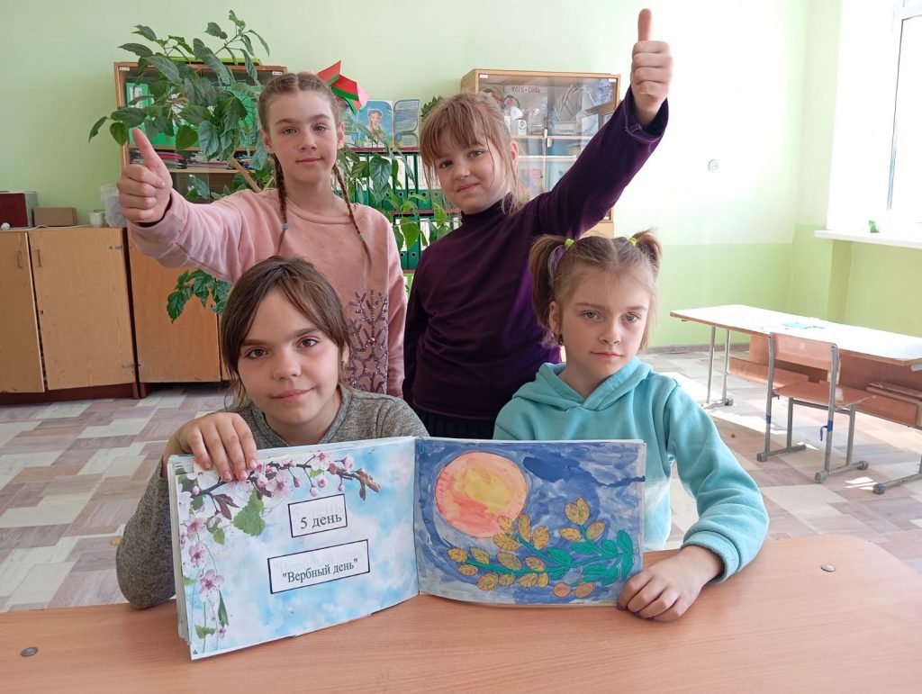 Поэтому ребята команды «Радуга» государственного учреждения образования «Коротковичская средняя школа Жлобинского района» изобразили вербу на фоне восходящего солнца. Заполнили последнюю страницу в сезонном календаре.
