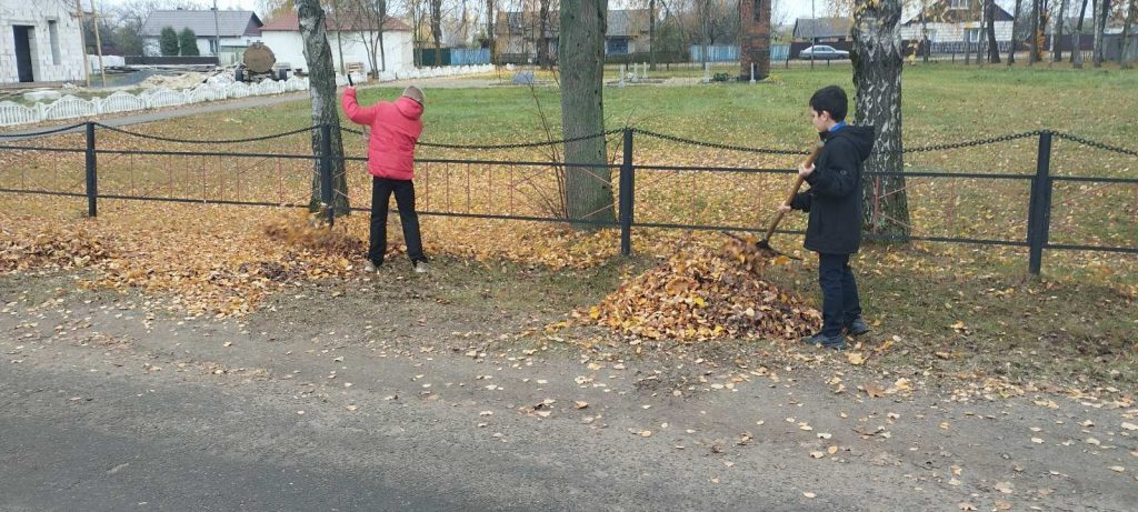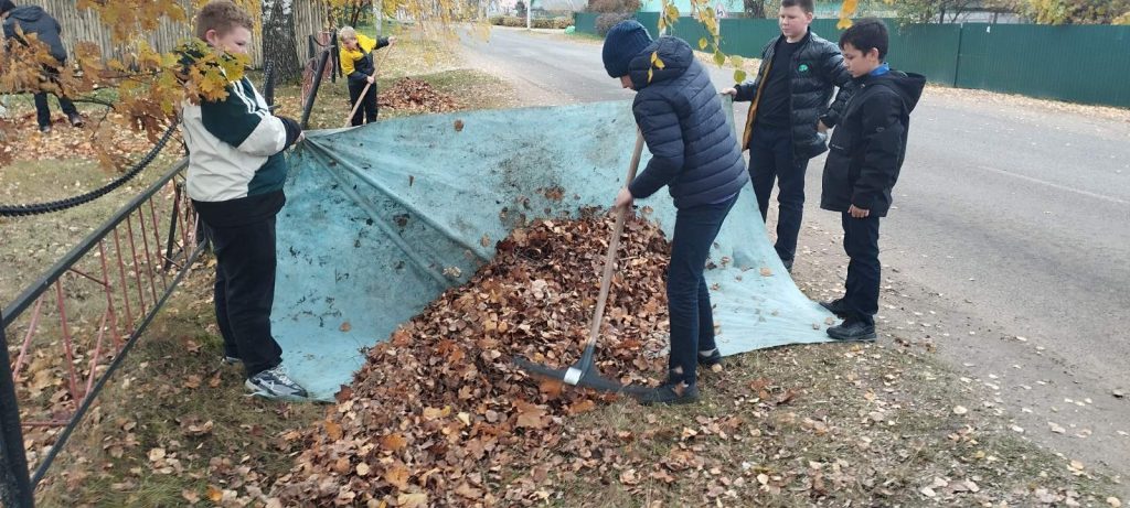 Осенние работы по уборке мемориального комплекса и воинского захоронения стали традиционными среди пионеров, октябрят пионерской дружины имени Олега Кошевого. Пионеры навели порядок: убрали прилегающую территорию, собрали ветки и сухую листву.