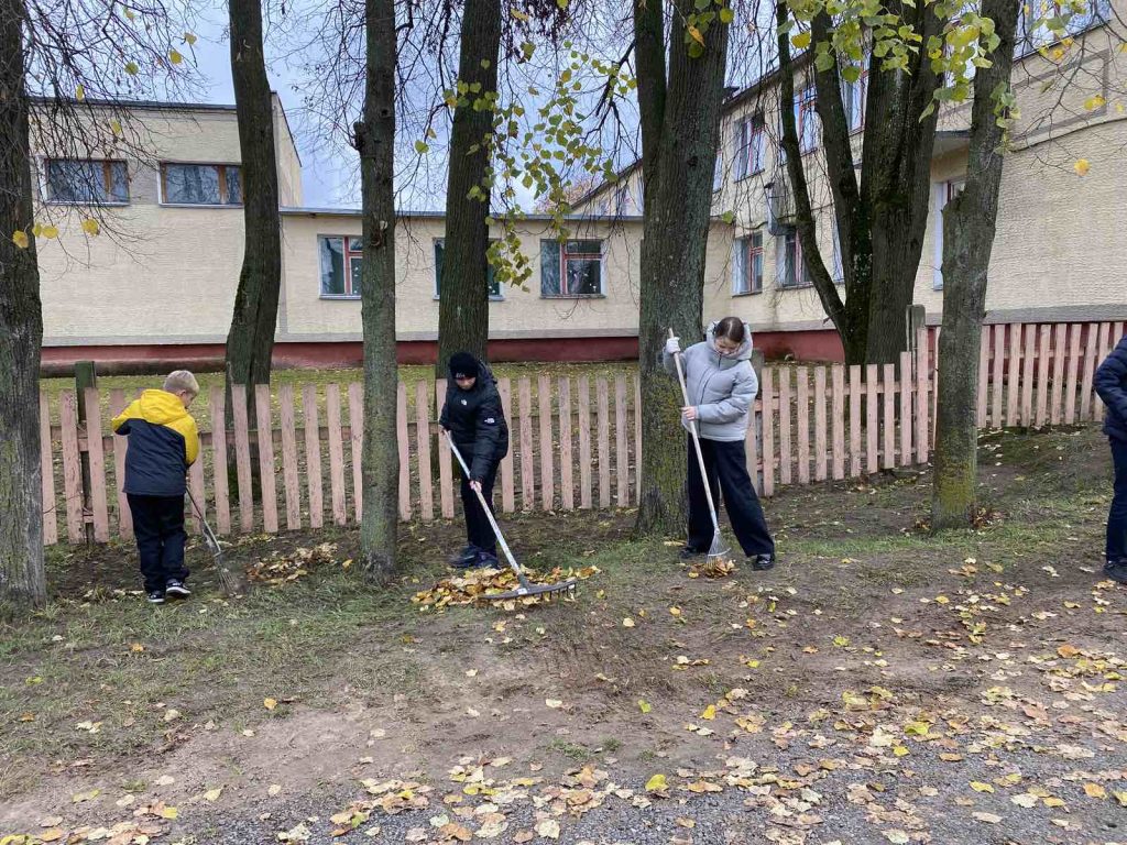 Учащиеся 5-9 классов провели трудовой десант по уборке школьной территории, приняли участие в акции «Обелиск».